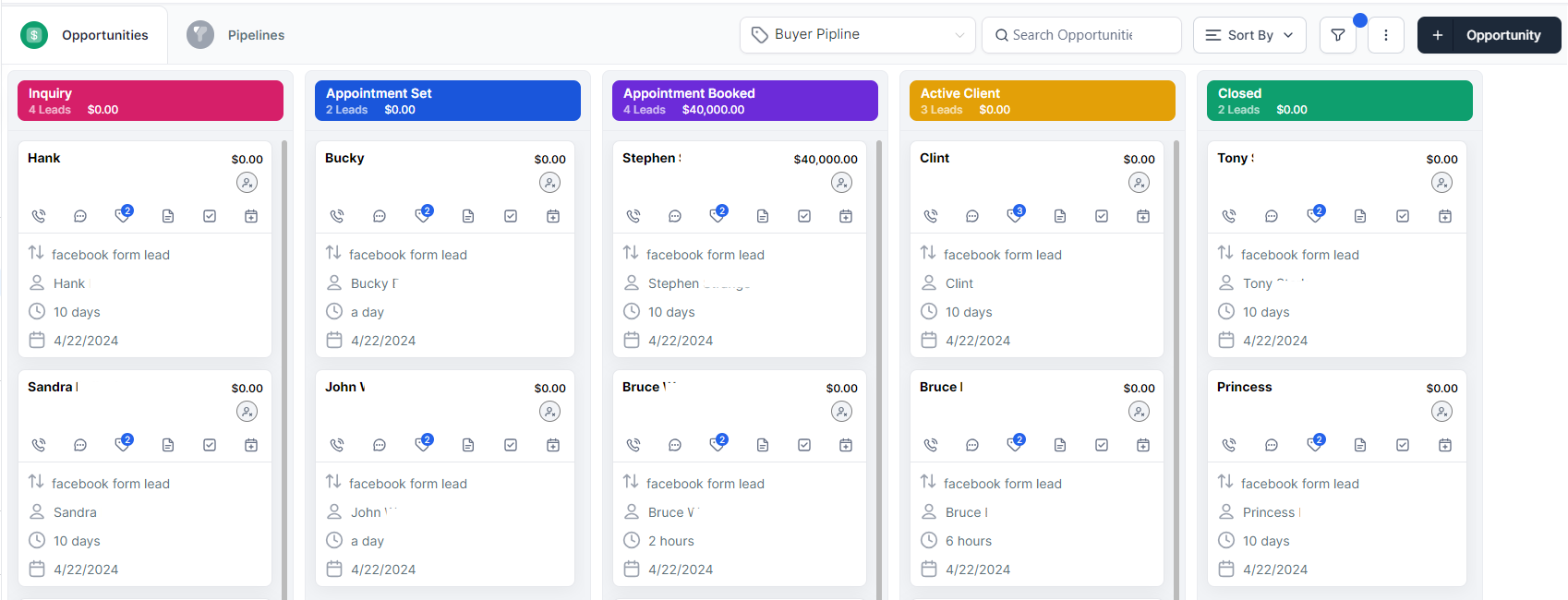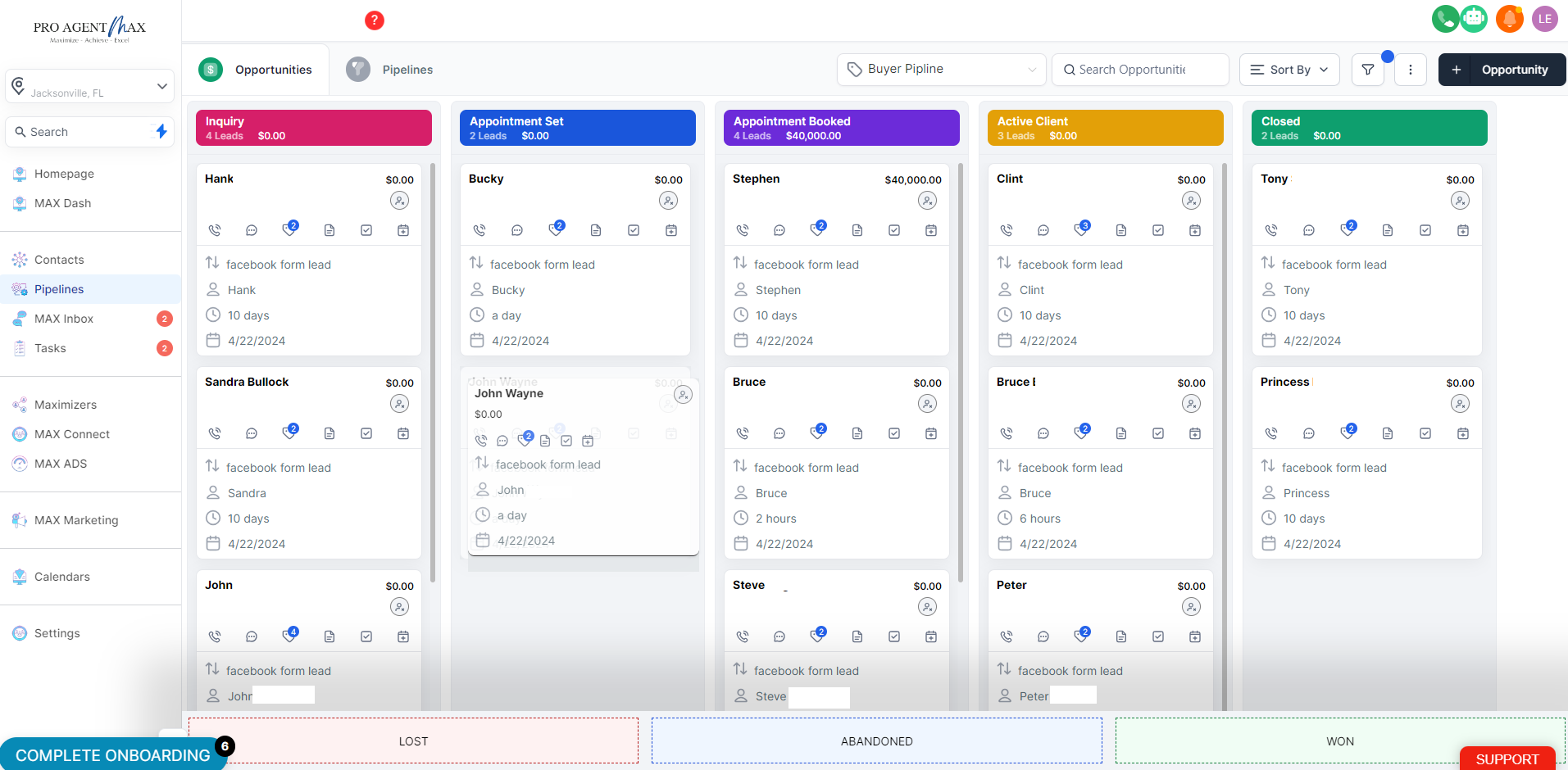 Opportunities in Pro Agent Max represent potential sales or deals at various stages of the sales pipeline.